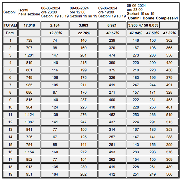 ore 23:00 Votanti: 8053 Percentuale: 47,32 %