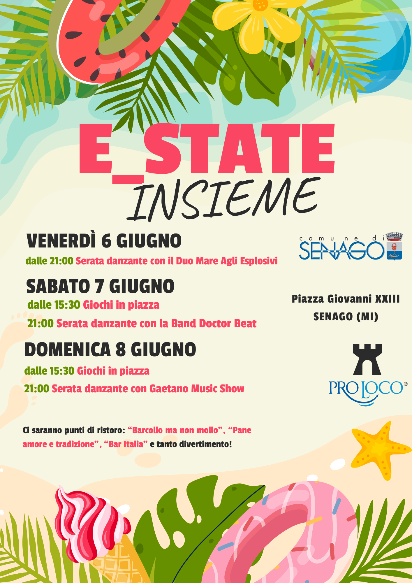 il 6, 7 e 8 Giugno si terrà E_STATE INSIEME, tre giorni di eventi, musica e animazione in Piazza Giovanni XXIII.