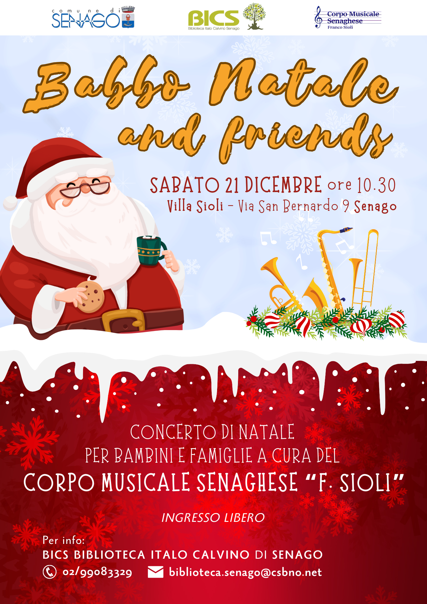 Il ๐๐ผ๐บ๐๐ป๐ฒ ๐ฑ๐ถ ๐ฆ๐ฒ๐ป๐ฎ๐ด๐ผ e la ๐๐๐๐ฆ sono lieti di invitarvi a festeggiare il Natale con un concerto a cura del Corpo Musicale Senaghese!