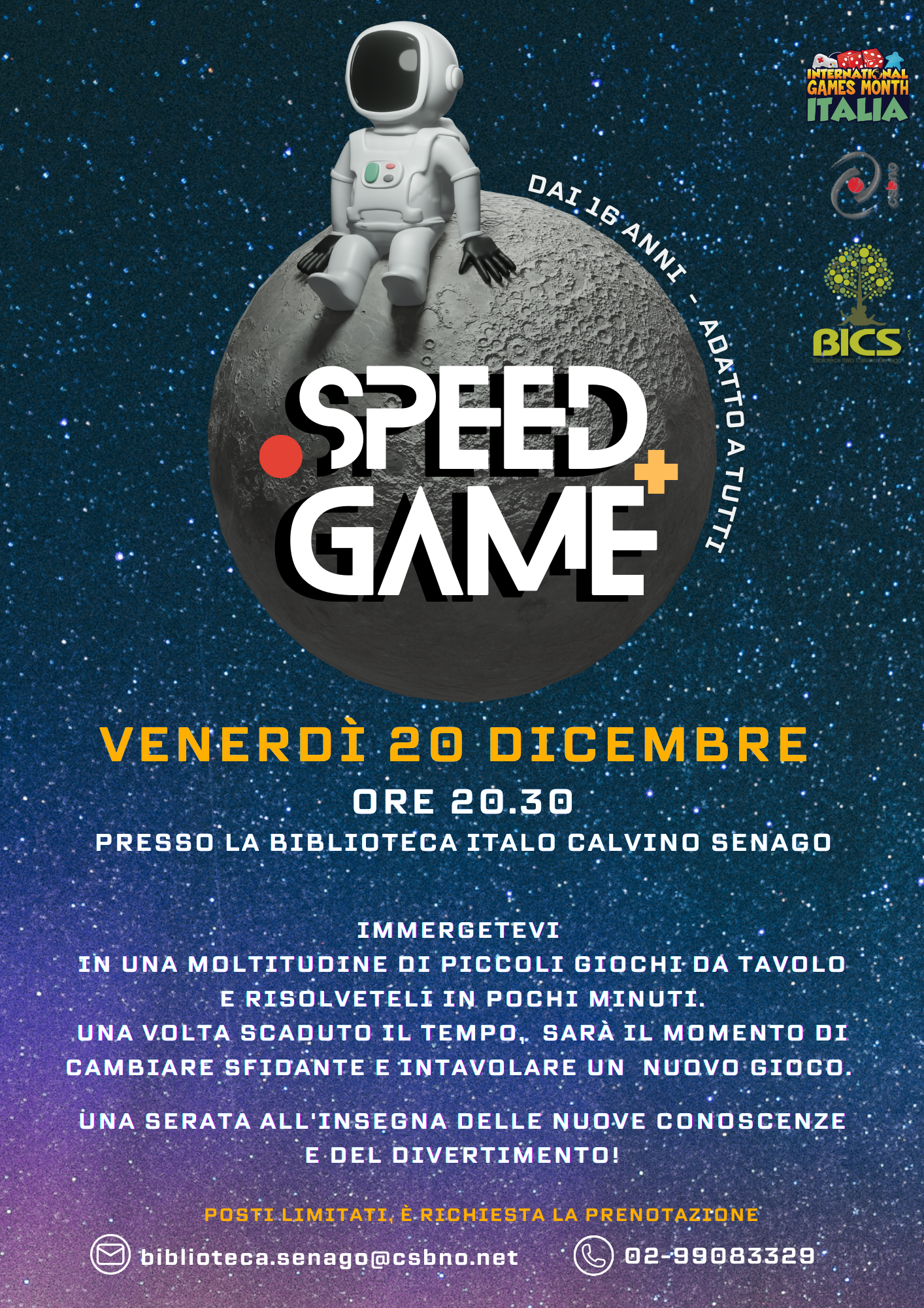 𝗦𝗽𝗲𝗲𝗱 𝗚𝗮𝗺𝗲 | 𝘃𝗲𝗻𝗲𝗿𝗱𝗶̀ 20 DICEMBRE 𝗮𝗹𝗹𝗲 𝟮𝟬.𝟯𝟬 in via Don Ambrogio Rocca, 19, 20030 Senago (MI)