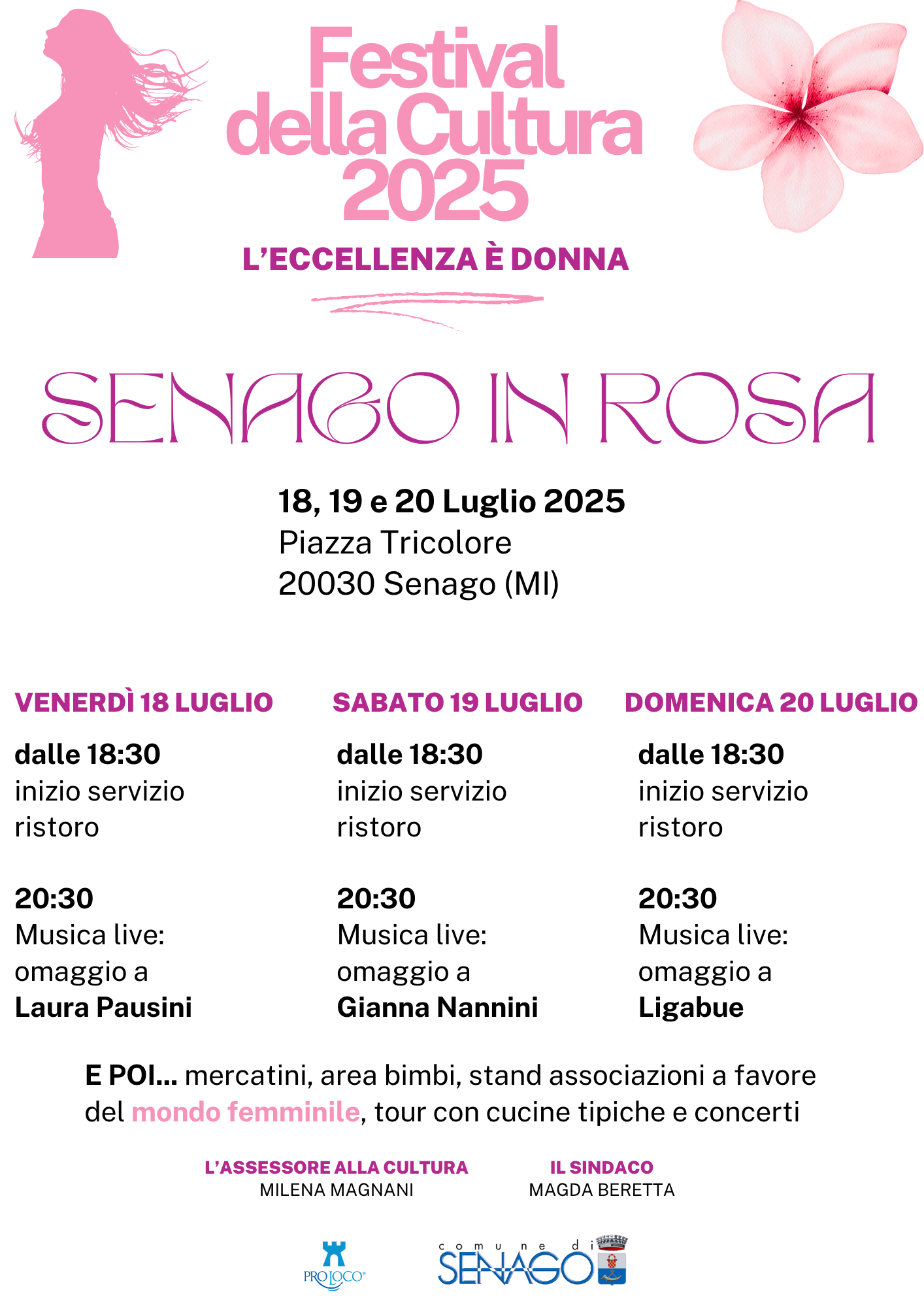Il Comune di Senago e Pro Loco Senago, in collaborazione con Zaini S.p.a., Sodexo, UTL Senago e Associazione Culturale Dorvàn, presenta la terza edizione del Festival della Cultura, quest’anno dedicato al tema: “L’eccellenza è Donna”. Di seguito il programma del Festival: