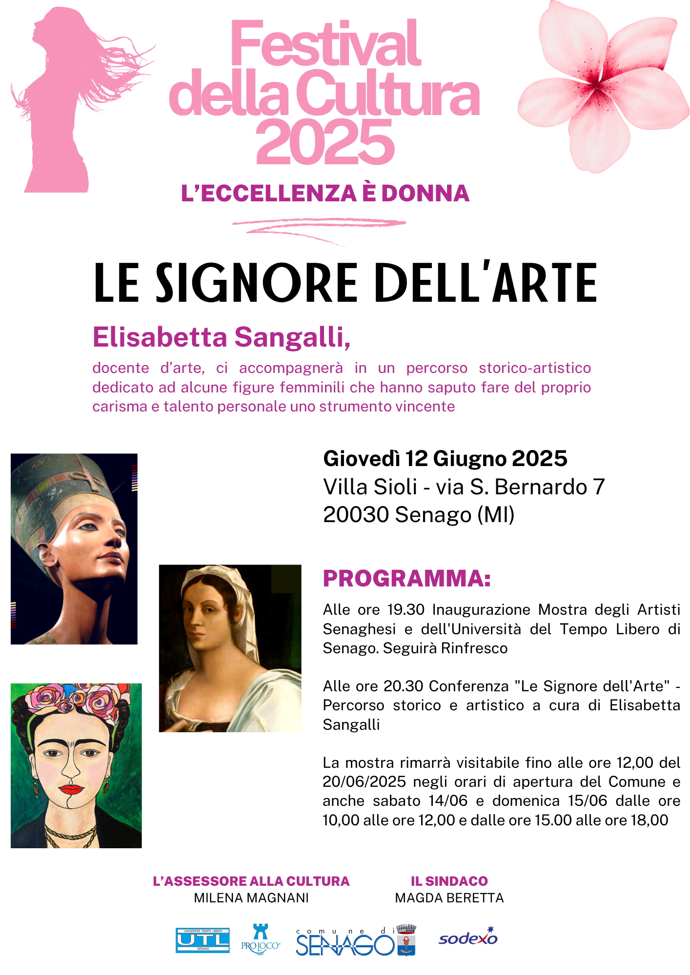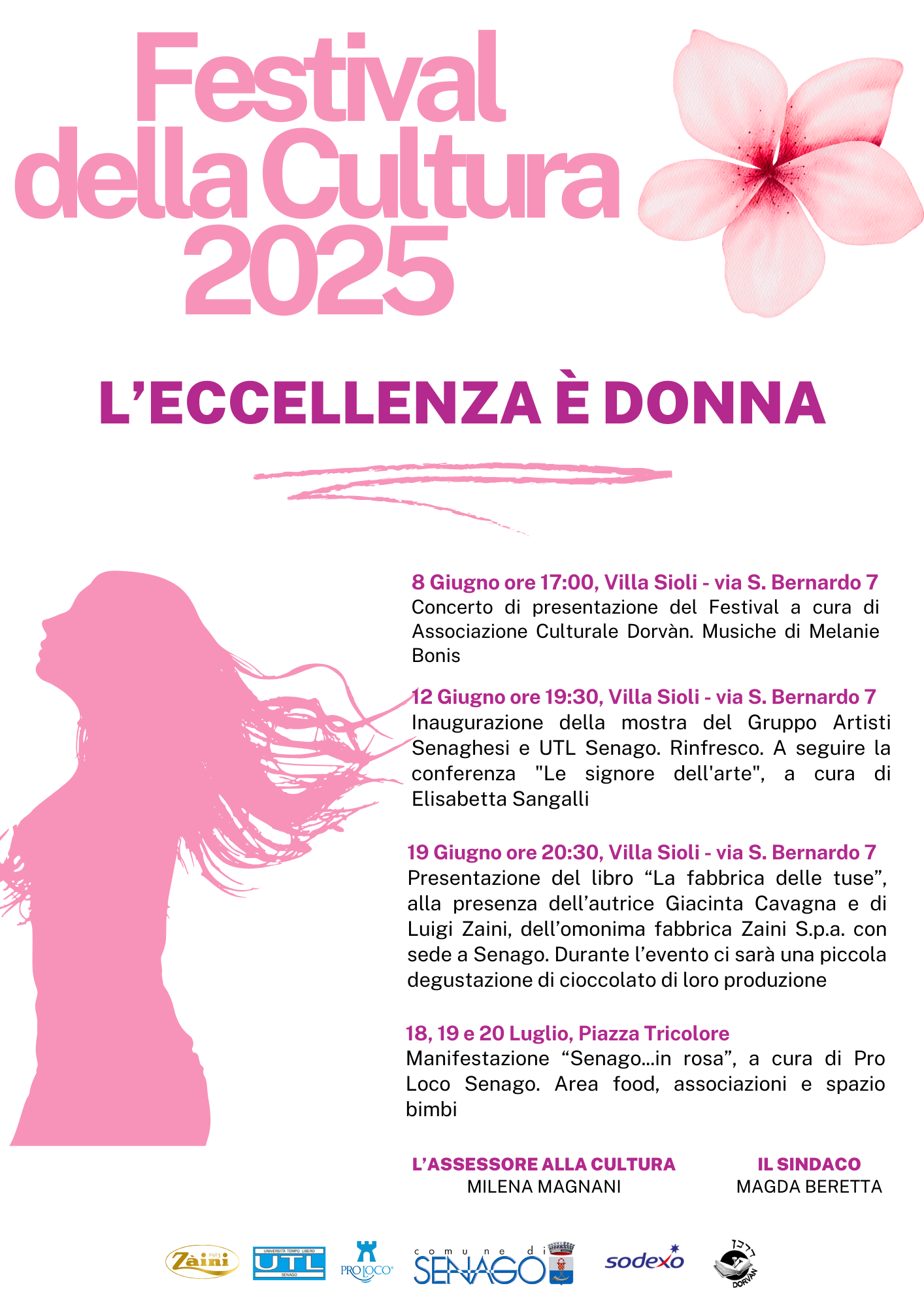 Il Comune di Senago e Pro Loco Senago, in collaborazione con Zaini S.p.a., Sodexo, UTL Senago e Associazione Culturale Dorvàn, presenta la terza edizione del Festival della Cultura, quest’anno dedicato al tema: “L’eccellenza è Donna”. Di seguito il programma del Festival: