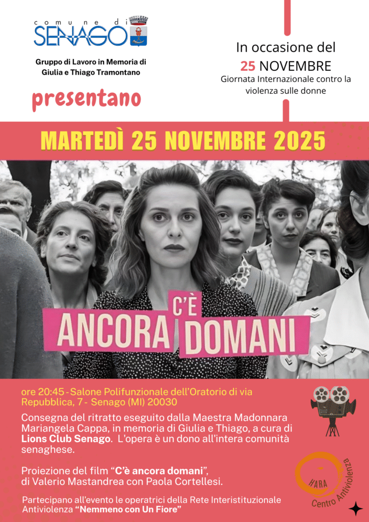 In occasione della Giornata Internazionale per l’eliminazione della violenza contro le donne, il Comune di Senago e il Gruppo di Lavoro in Memoria di Giulia e Thiago Tramontano organizzano: