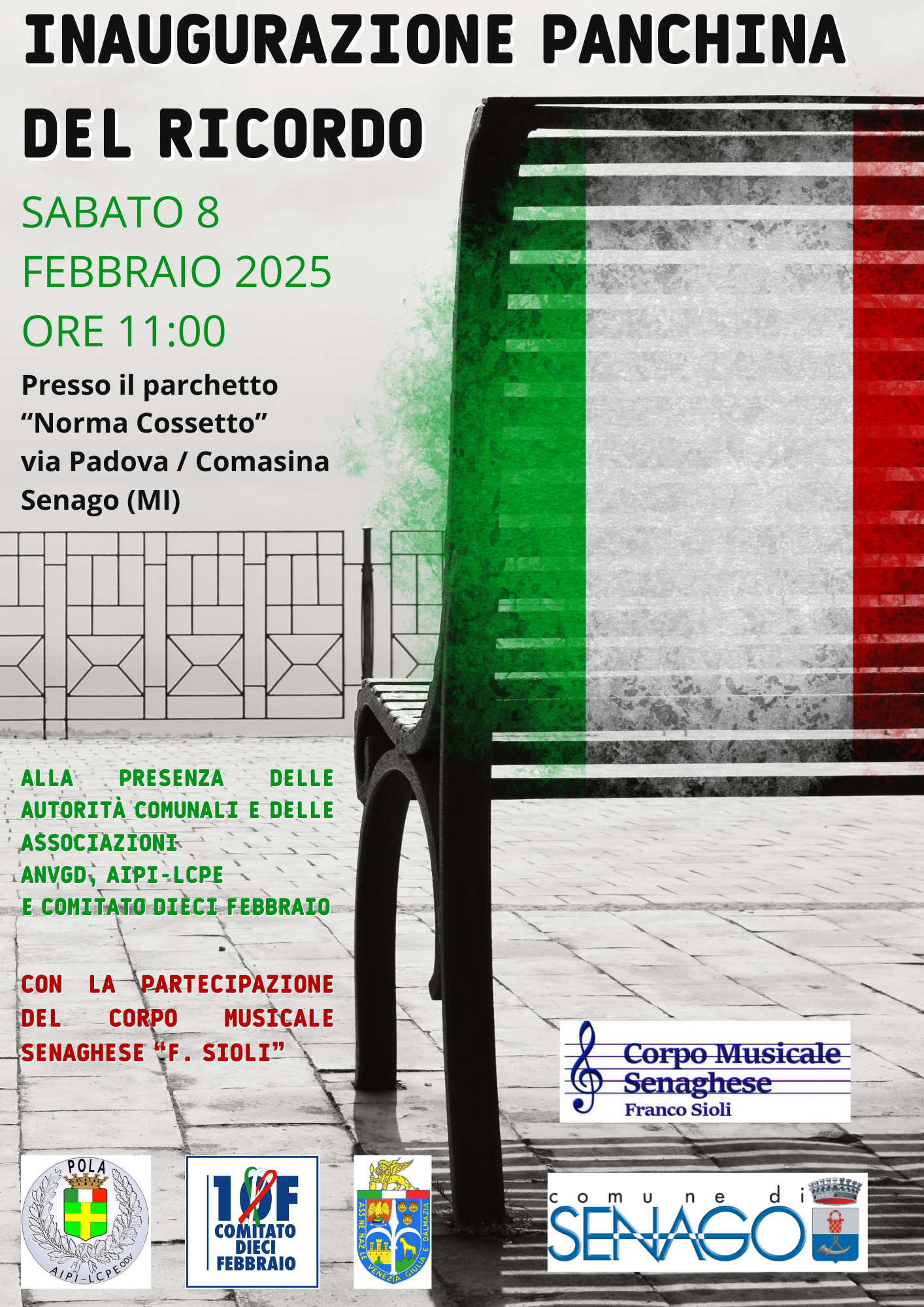 che si terrà sabato 8 febbraio 2025 alle ore 11:00 presso il parchetto “Norma Cossetto” di via Padova / Comasina, Senago (MI)