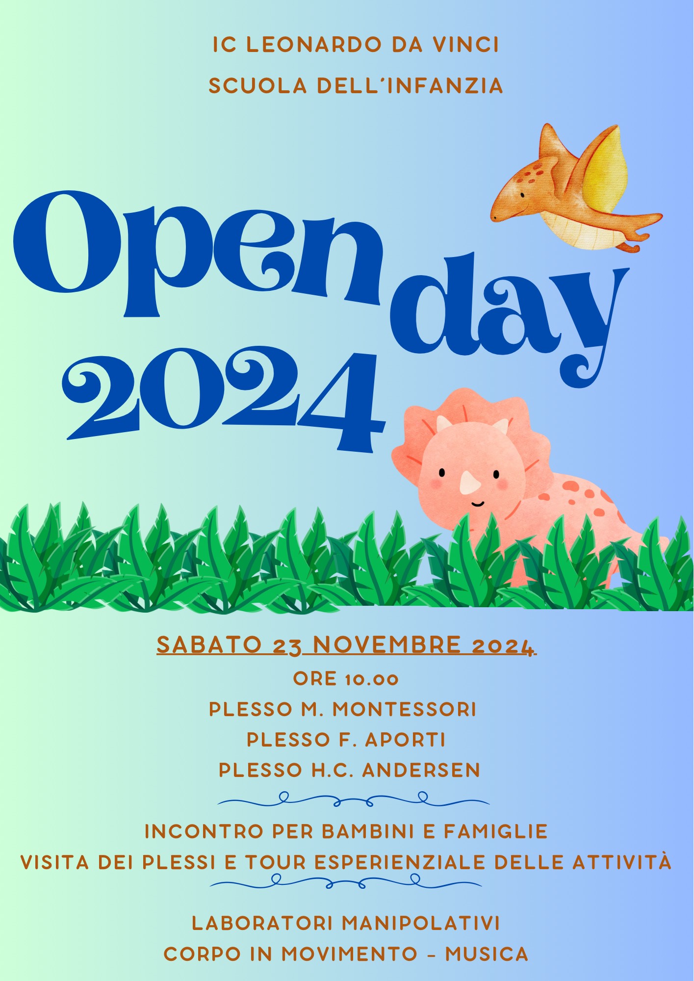 la giornata di open day della Scuola dell'Infanzia, dell'IC Leonardo Da Vinci