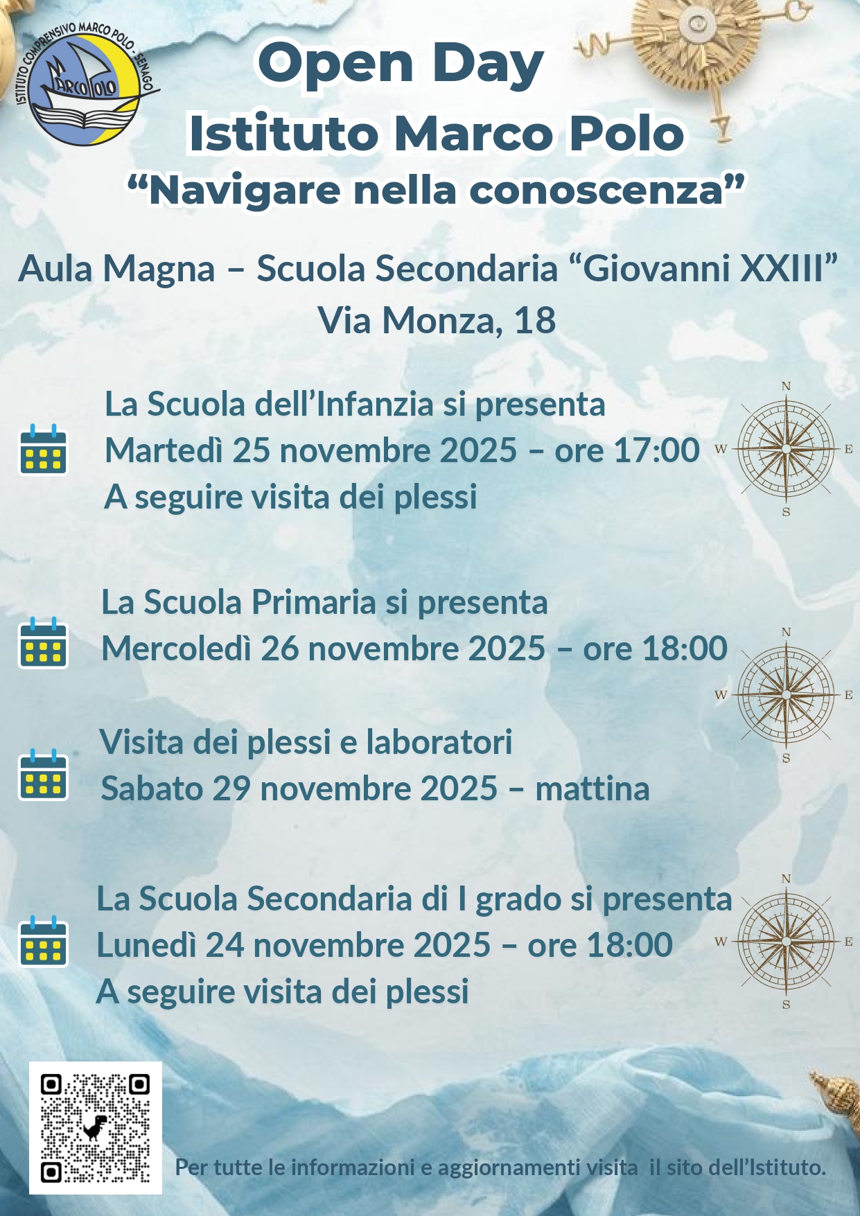 - Scuola dell’Infanzia, Martedì 25 Novembre 2025 – ore 17:00. A seguire visita dei plessi,
