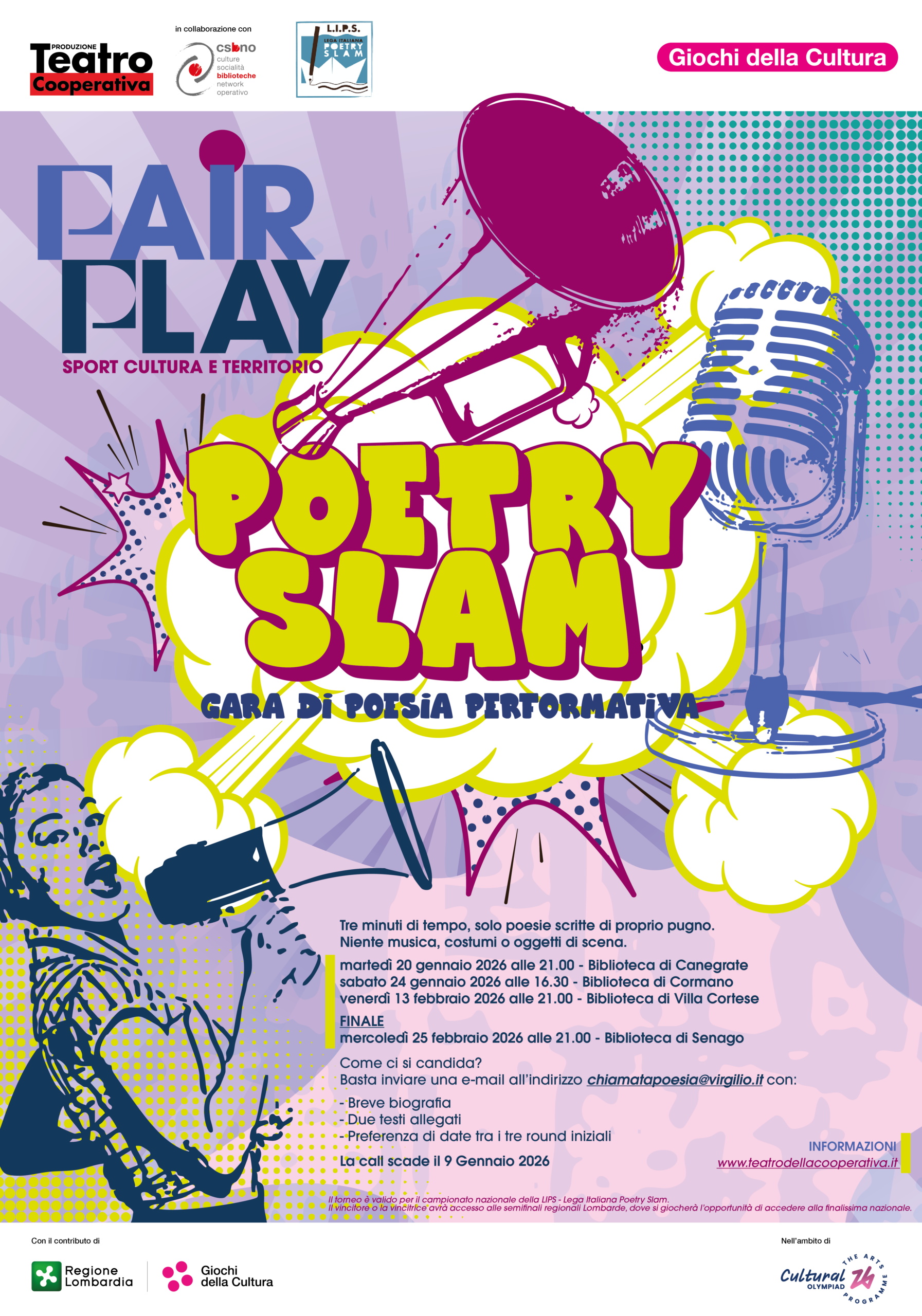 Poetry Slam, una gara di poesia performativa in quattro biblioteche della rete Csbno. Una gara-spettacolo, un pretesto per coinvolgere il pubblico nell’ascolto della poesia come divertissement e come sfida.