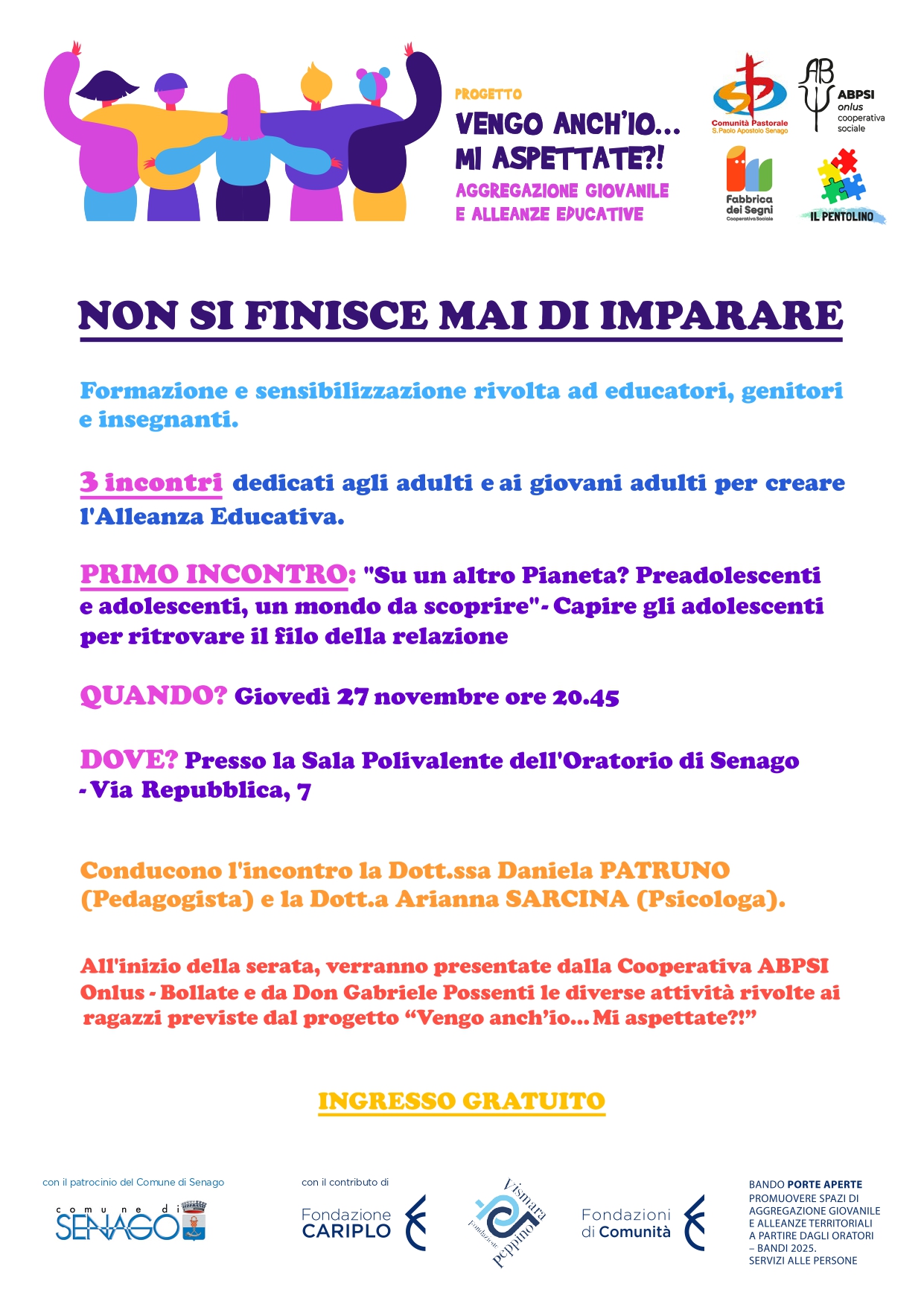 Prende avvio il progetto patrocinato dal Comune di Senago con una serie di incontri di formazione e sensibilizzazione rivolti ad educatori, genitori e insegnanti.