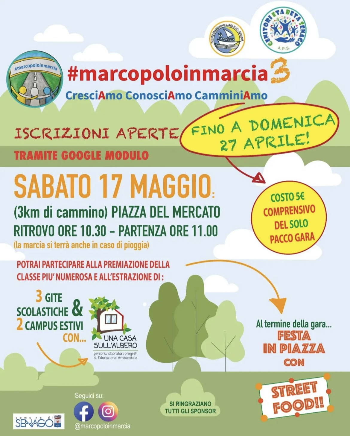 L‘Istituto Comprensivo “Marco Polo” e l’associazione Genitori Eta Beta Senago, organizzano, con il patrocinio del Comune di Senago, la Terza Marcia d’Istituto per sabato 17 maggio 2025 con il programma seguente: