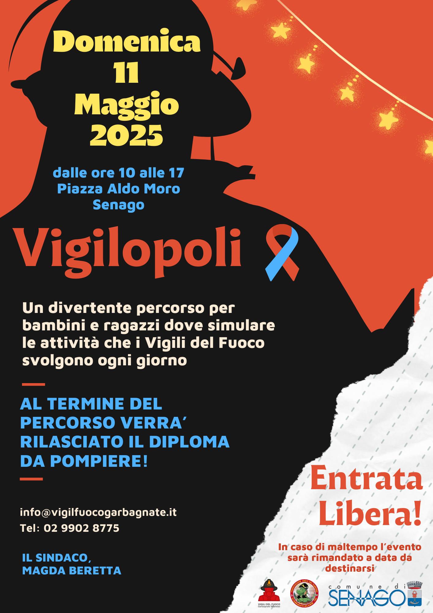 L’Amministrazione Comunale, i Vigili del Fuoco di Garbagnate Mianese, in collaborazione con l’Associazione Amici dei Pompieri, è lieta di presentare VIGILOPOLI, edizione 2025, per domenica 11 maggio 2025 dalle ore 10 alle 17, in Piazza Aldo Moro (Piazza del Mercato), affianco agli stand dello street food.